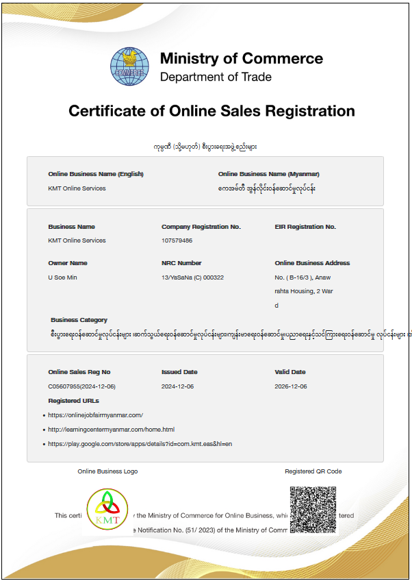 Our Kaung Myat Thu Company was established as a Private Company on August 28, 2009 in accordance with the terms set by the State. The Company was able to conduct its main activities in the business sector, namely manufacturing and trading and service activities, in accordance with the laws. Since the establishment of the company, the main priority has been to provide services for people's basic needs such as food and clothing and housing and education and health. Opening capacity building courses for human resource development and organizing job opportunity fairs to provide employment opportunities. (Employees and technical s Seemore...
